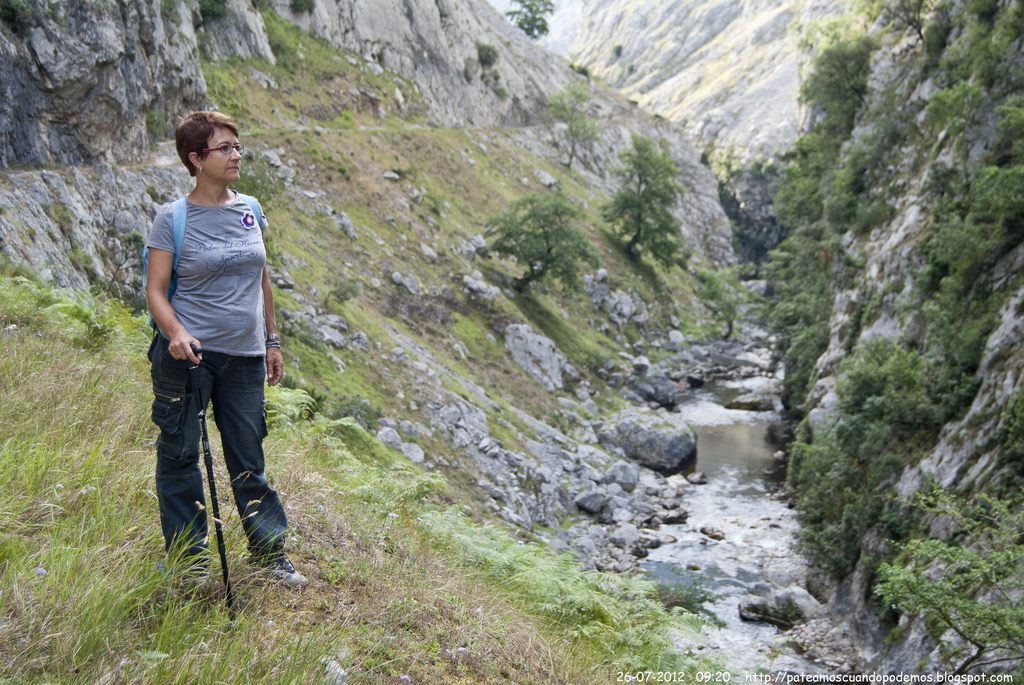 Madrugamos esta vez y tras aparcar el coche en un lado del camino cogimos hacia adelante, los cuatro, mirando hacia la izquierda de este camino, admirando el río Cares y su desfiladero. El camino que cojimos está justo a la espalda de estos modelos.