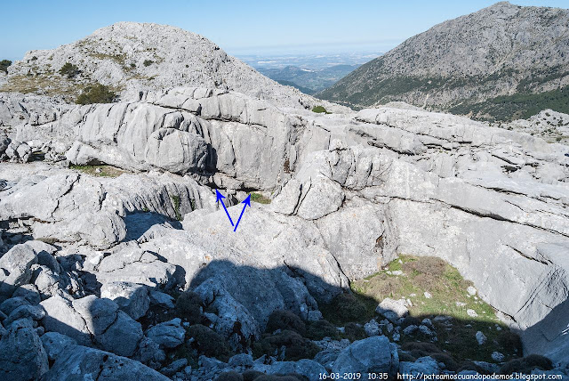 Esta vista es muy importante para alcanzar la gruta rápidamente. Yo continúo hacia adelante para ver el Arco del Endrinal (no lo he "afotado" esta vez). Luego me he vuelto por mis pasos y desde este punto tiro hacia la izquierda.